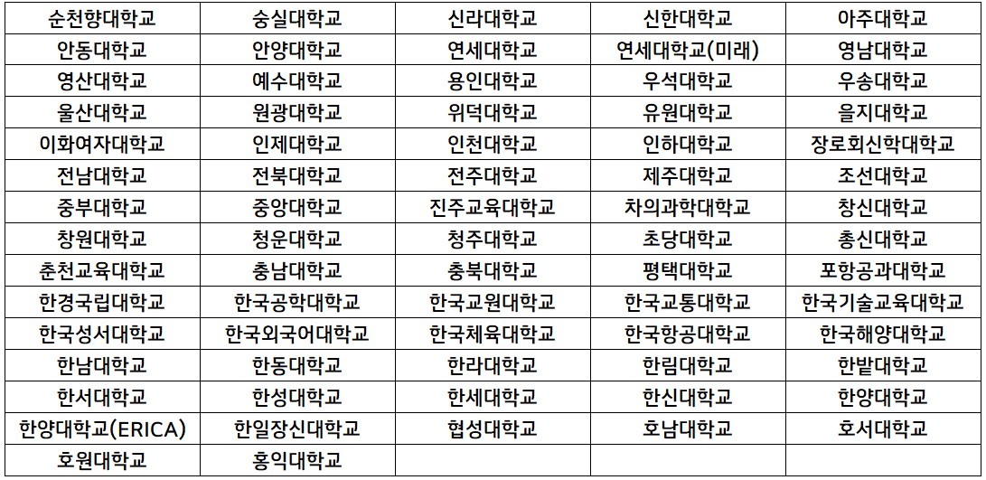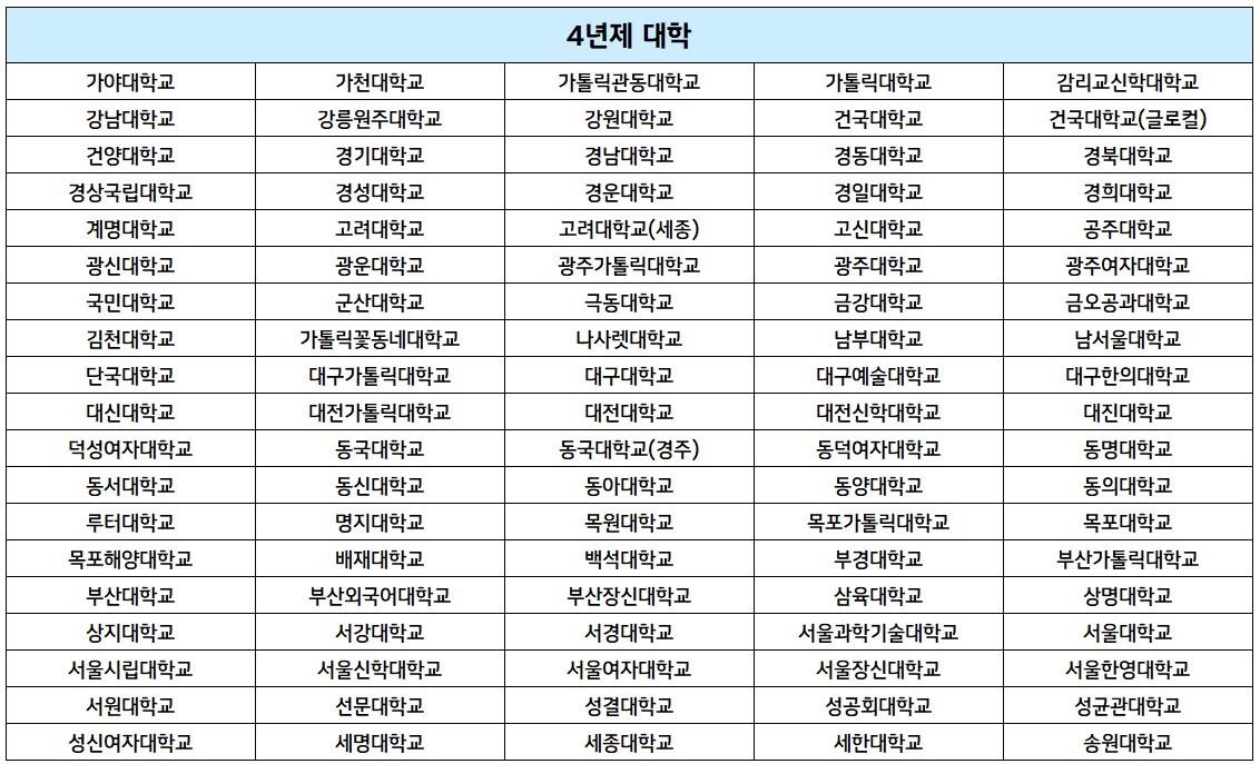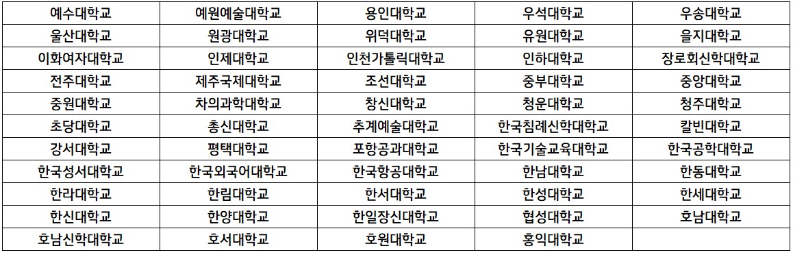 ※ 대학의 지원대상에 따라 지원금액이 다르므로, 자세한 금액은 대학별 문의 필요