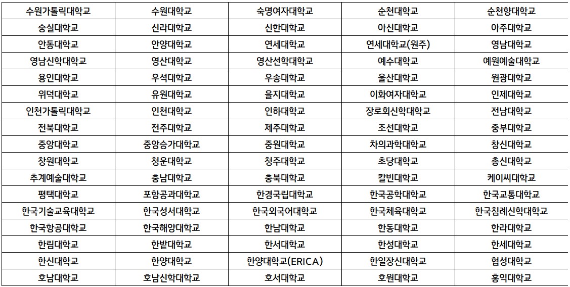 □ 당해 년도 국가장학금 2유형(대학연계지원형) 지원 가능 대학 중 2유형(대학연계지원형) 참여 대학