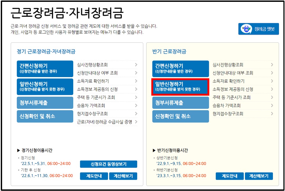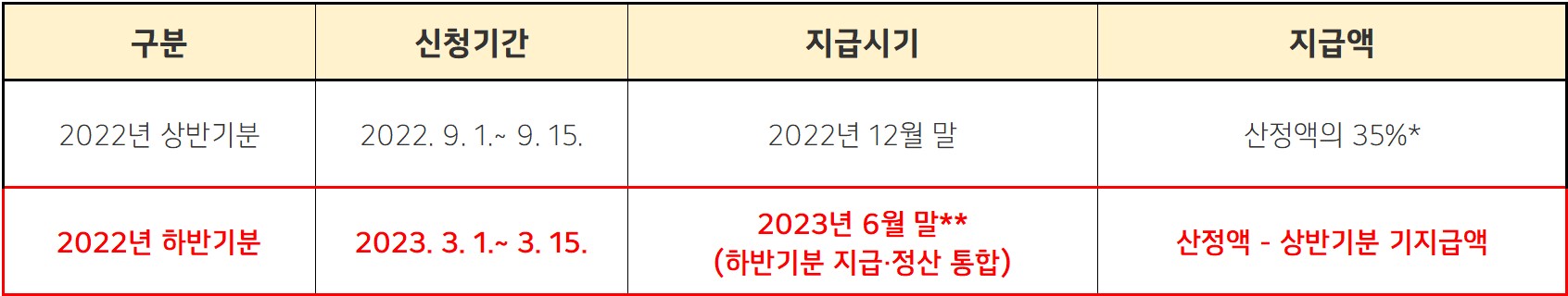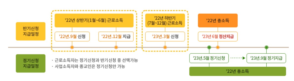 2022년 하반기(7월~12월) 근로소득의 대한 장려금을 2023년 3월에 신청하는 것을→ 근로장려금 반기 신청 이라고함