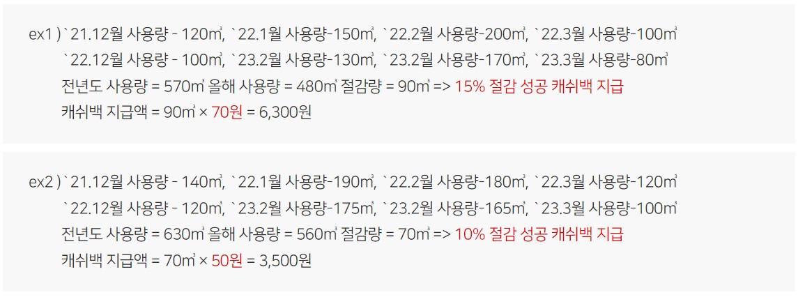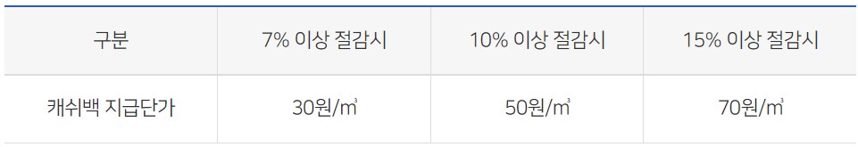전년 동기간 대비 7%이상 절감시 절감율별 차등 지급하며,  절감율이 높을수록 캐시백 지급단가가 높아집니다.