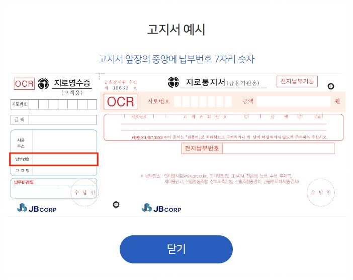※ 고지서로 납부자번호 7자리 확인하는 법