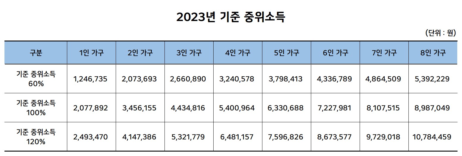 - 당해년도 기준 중위소득의 60% 이하인 자(200만원)