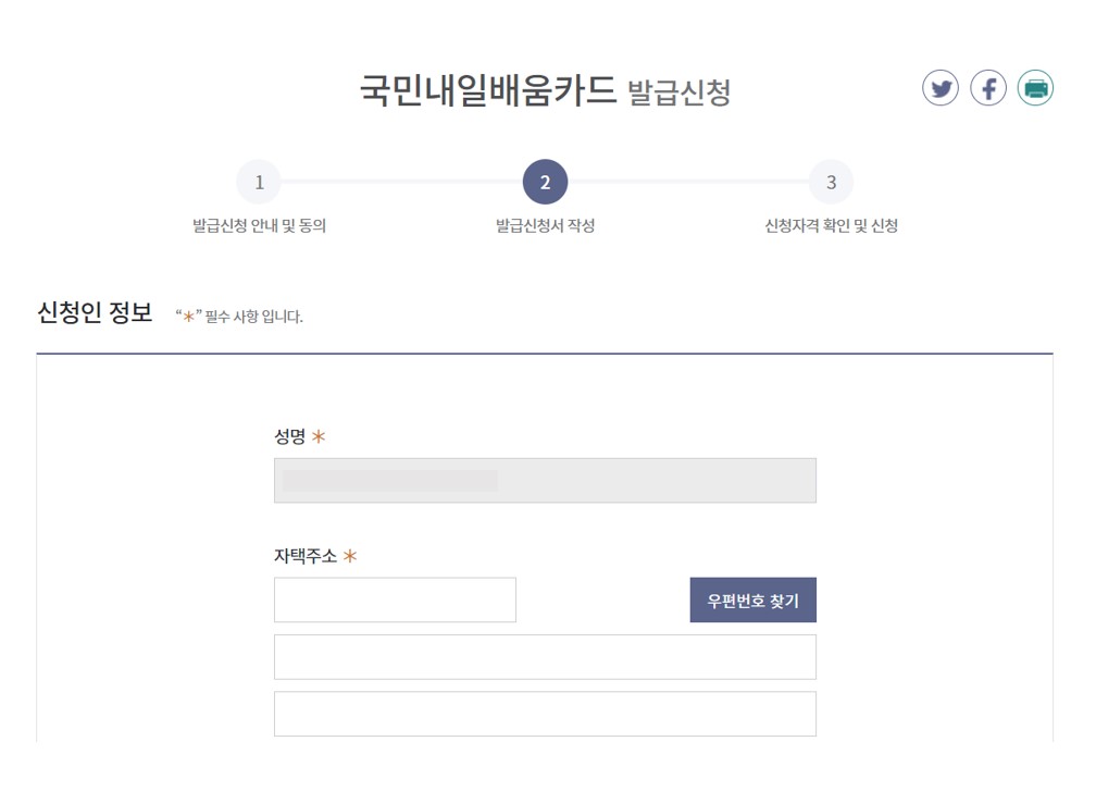 - 체크카드 : 체크카드 기능을 포함한 국민내일배움카드로 발급신청 희망 시 선택