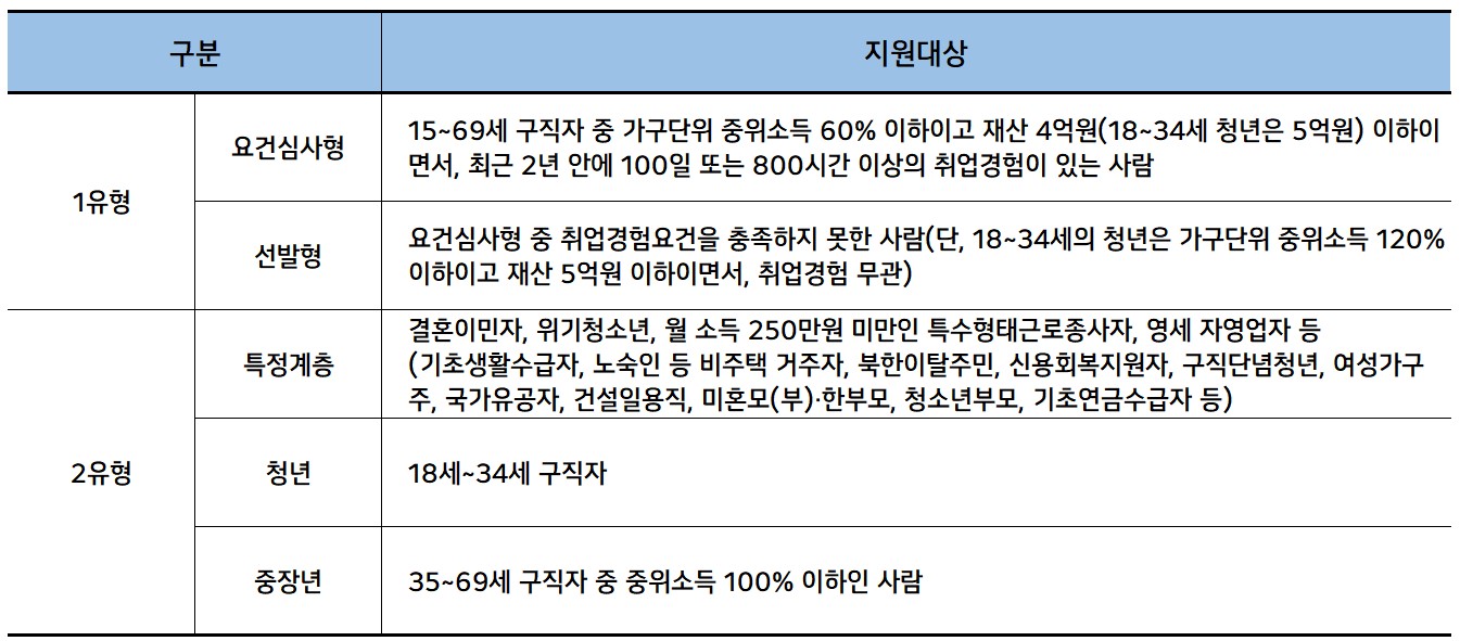 ○ 국민취업제도 1유형, 2유형 구분