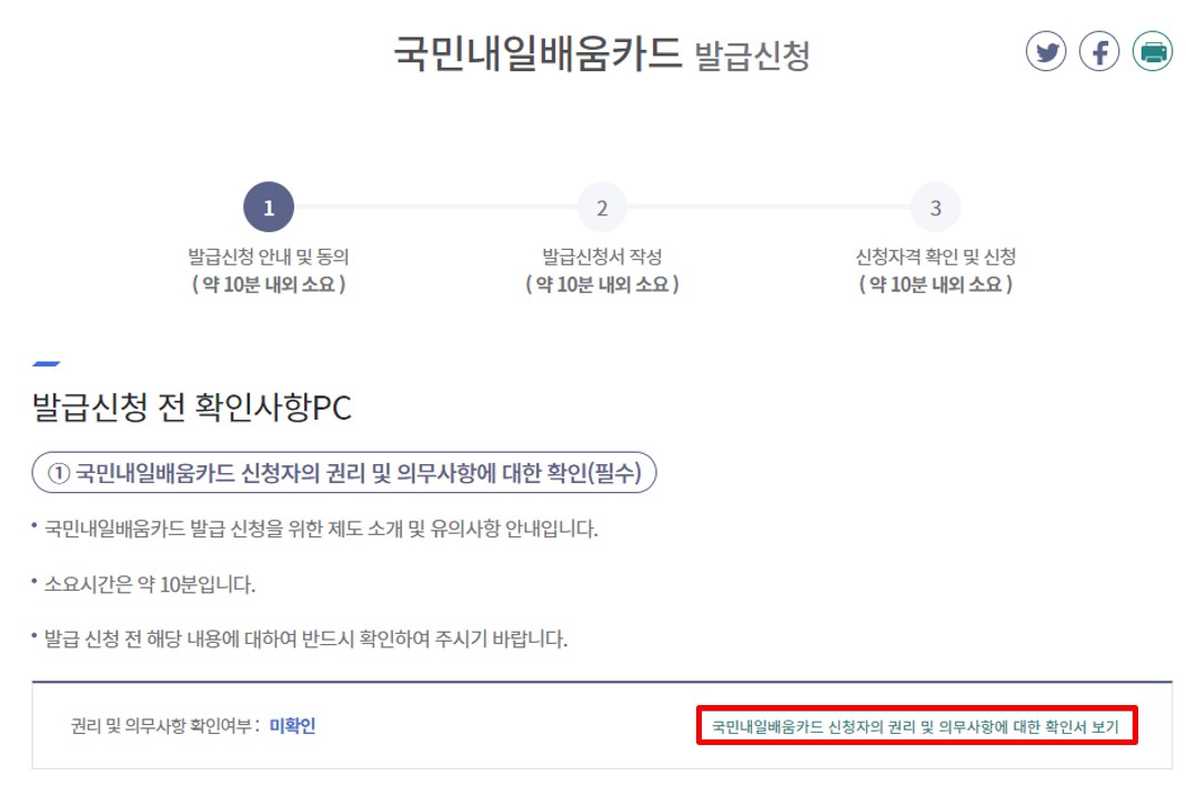 ○ 국민내일배움카드 발급 전 반드시 국민내일배움카드 신청자의 권리 및 의무사항에 대한 확인서 확인