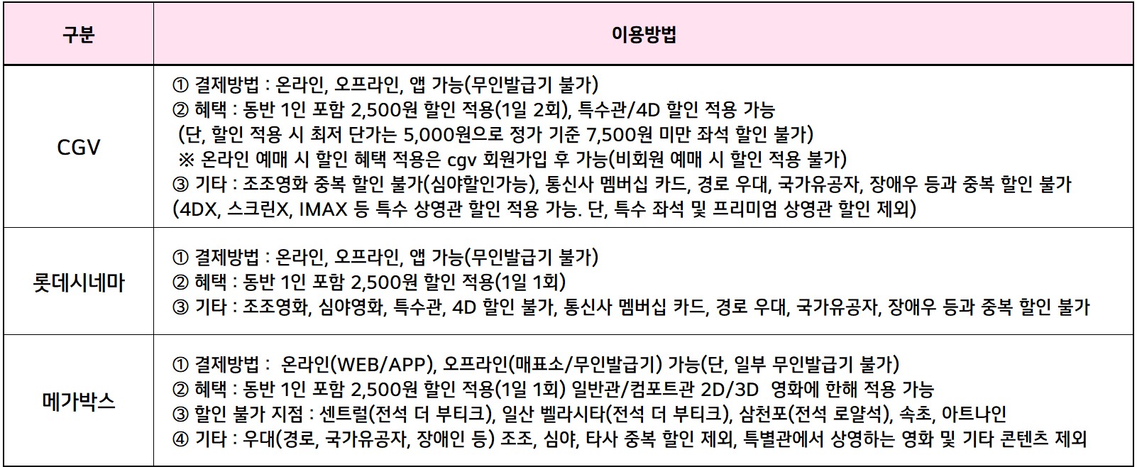 ○ 영화 관람료 2,500원 할인