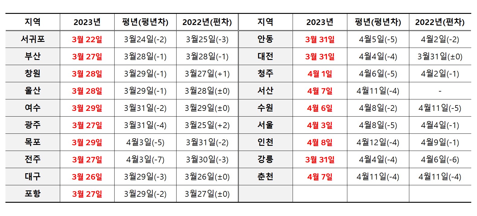 벚꽃 개화시기는 평년보다 기온이 높아지면서 벚꽃 개화시기도 앞당겨질 가능성이 큽니다.