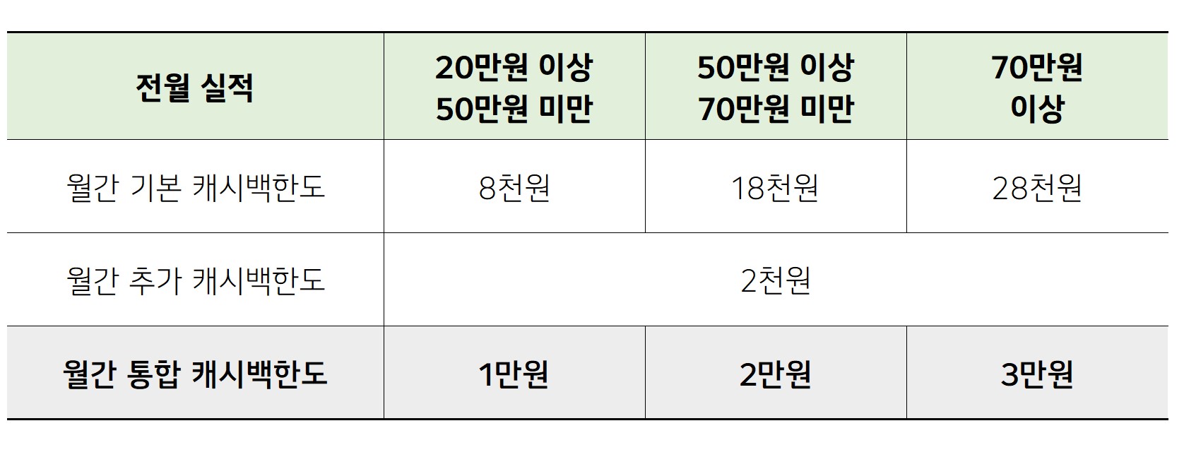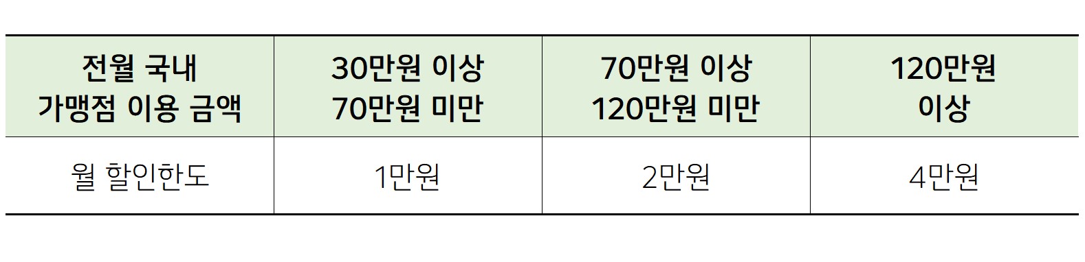 □ 전월 1일~말일까지 국내 가맹점 사용금액이 25만원 이상 이용 시 서비스 제공