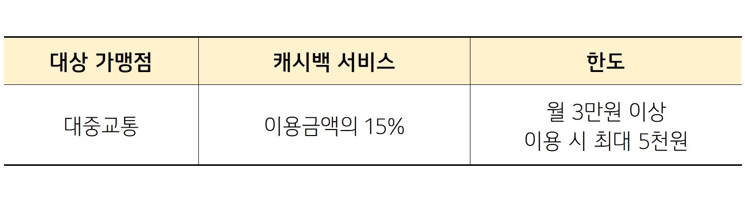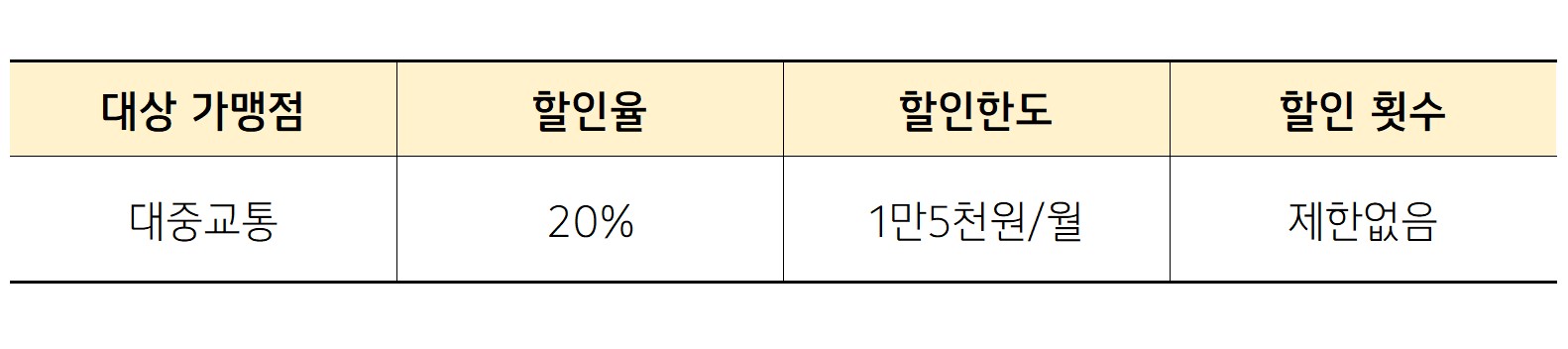□ 대중교통으로 이용한 후불교통카드 매출 건에 한해 할인이 제공됩니다.