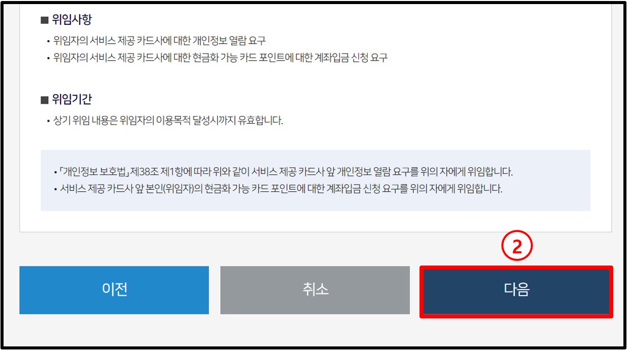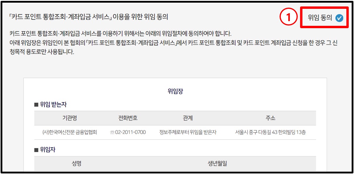 * 위임에 동의 해주셔야지 카트 포인트가 통합 조회가 됩니다.