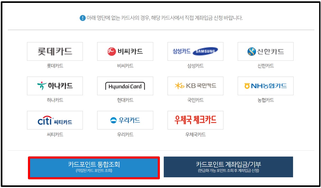 2021년 1월 5일부터 카드 포인트 통합조회 및 계좌입금 서비스를 개시했습니다.