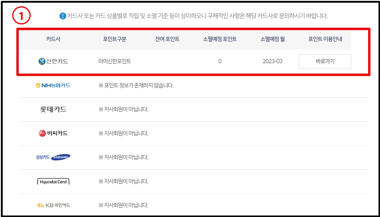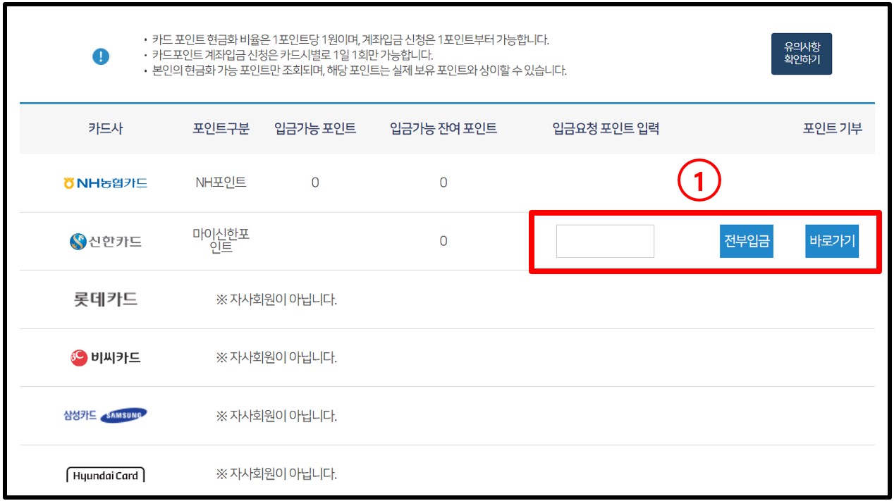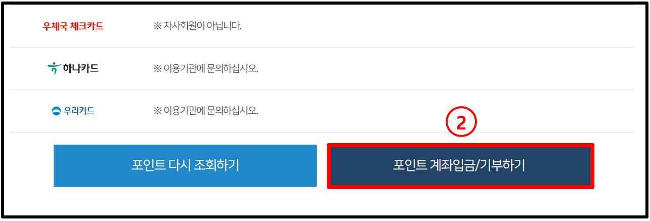 06 내가 사용하는 카드사의 잔여포인트를 확인 후 포인트 계좌입금/기부하기 선택
