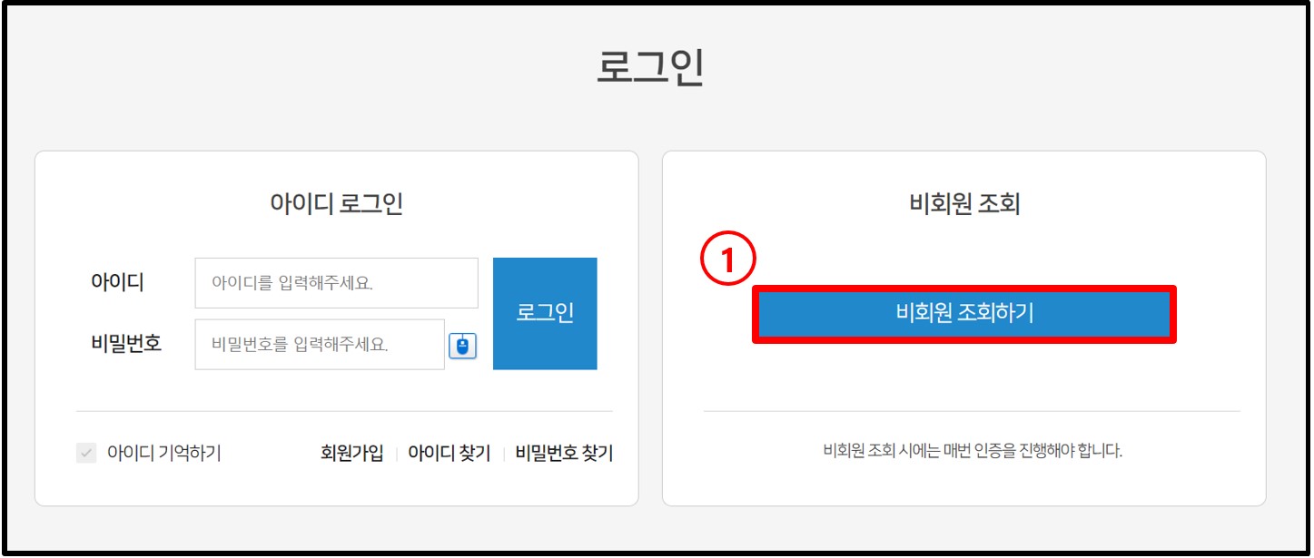 03 비회원 조회하기 → 개인정보 동의 전체동의 체크 → 확인 → 휴대폰 인증 선택