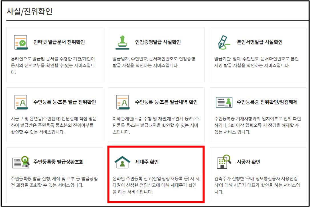 02 사실/진위확인 화면에서 [세대주 확인] 클릭