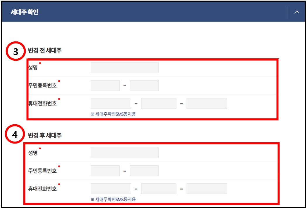 ③ 변경 전 세대주 성명/주민등록번호/휴대폰번호 입력