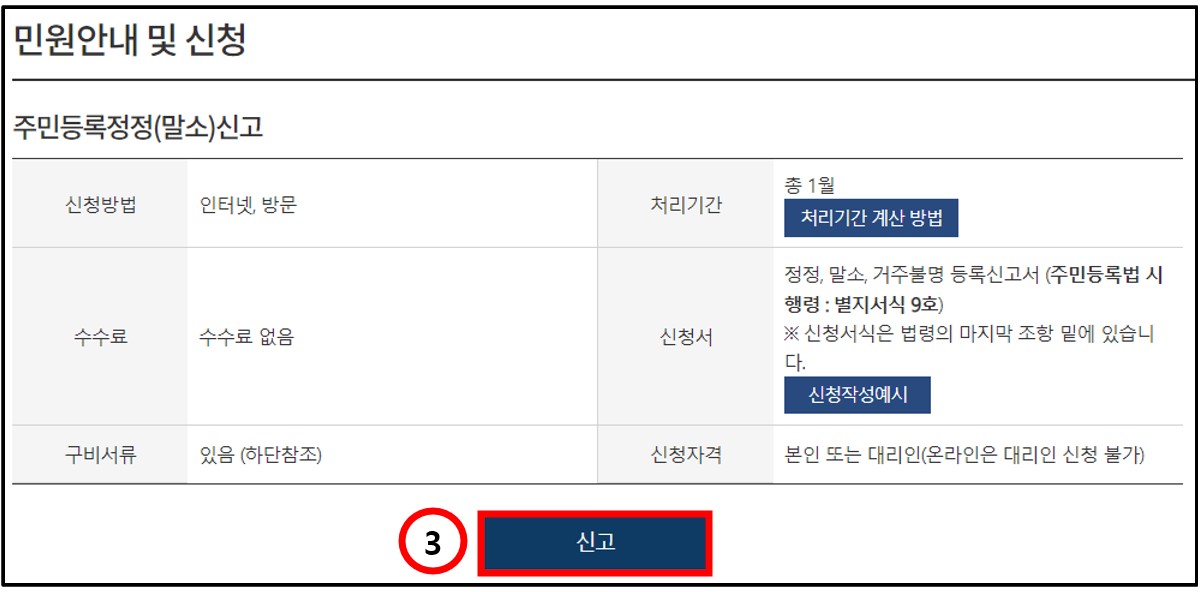 □ 근무시간(18시) 이후나 토요일, 공휴일에 신청하는 경우 다음 근무일(세대주 확인이 필요한 경우는 세대주 확인 완료일)에 신청시 접수되어 담당자 확인 후 신고가 수리 또는 반려됩니다.