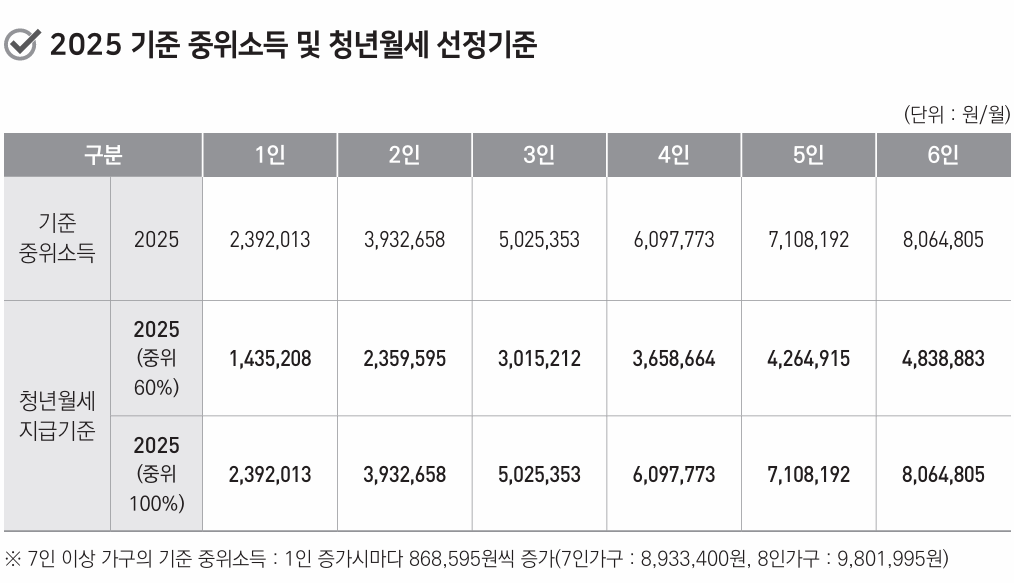✅ 청년가구 소득: 기준 중위소득 60% 이하