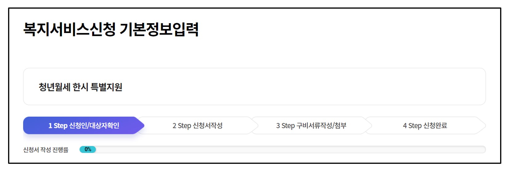 홈페이지 접속 후 청년월세 특별지원 인터넷 신청방법은 다음과 같습니다. 아래 이미지 순서대로 따라하시면 됩니다.