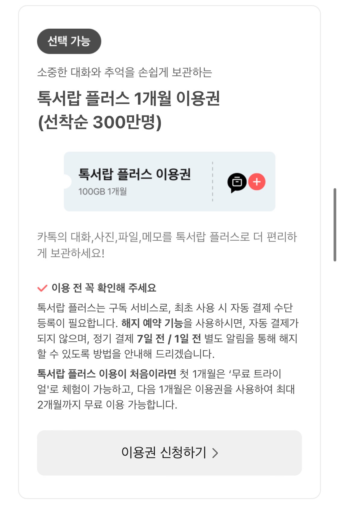 3. 톡서랍 1개월 이용권(300만명) [선택제공]
