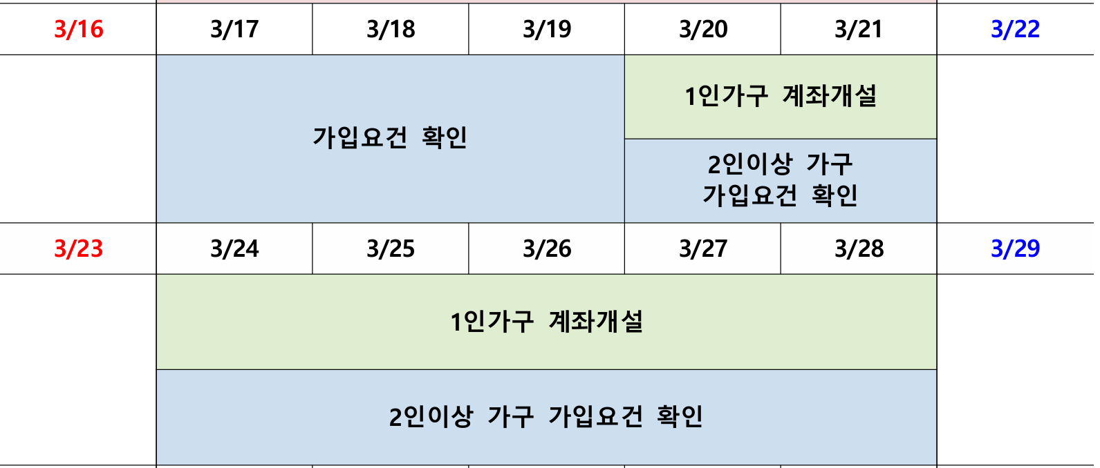 3월 17일(화) ~ 3월 28일(금) : 가입요건 및 계좌개설 기간